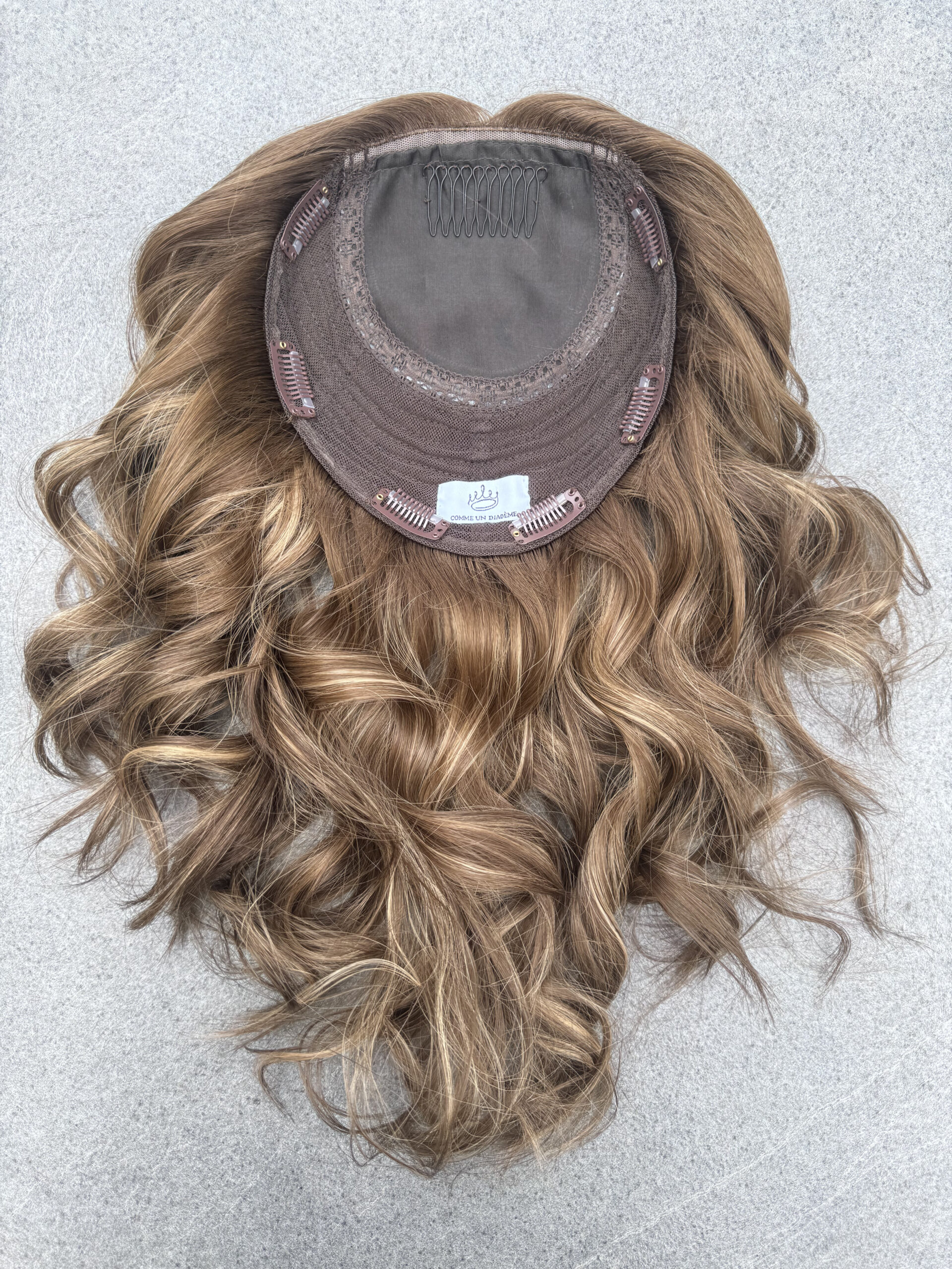 Hair hair topper has usually undergone complex bleaching and colouring processes before achieving its final colour. This hair has therefore been sensitised. It may react in an unexpected way to a colouring or bleaching process. It is usually possible to darken a hair topper. However, it is not recommended to bleach it as this may alter the hair. Therefore, when in doubt between two shades as to which hair colour to choose, it is best to choose the lighter shade of hair. In any case, it is important to have the hair topper coloured or bleached by a professional colourist who is used to working with this type of hair. Hair toppers Comme un diadème are sold uncut. Therefore, at first try, the hair topper may not seem to fit your face and/or hairstyle. However, a rough piece needs to be made to fit you completely. We therefore recommend that, if the basic colour, length and size are suitable for you, you have the hair topper cut by a hairdresser so that it can blend in completely naturally with your own hair.