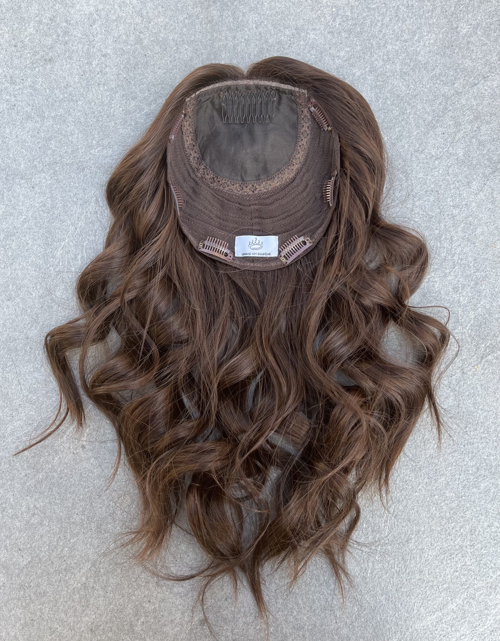 A topper is a partial hair prosthesis that is attached to the top of the head with clips. It adds volume and density to the hair. The topper blends into your hair for a natural and completely undetectable result. It is easy to position and convenient to use on a daily basis.