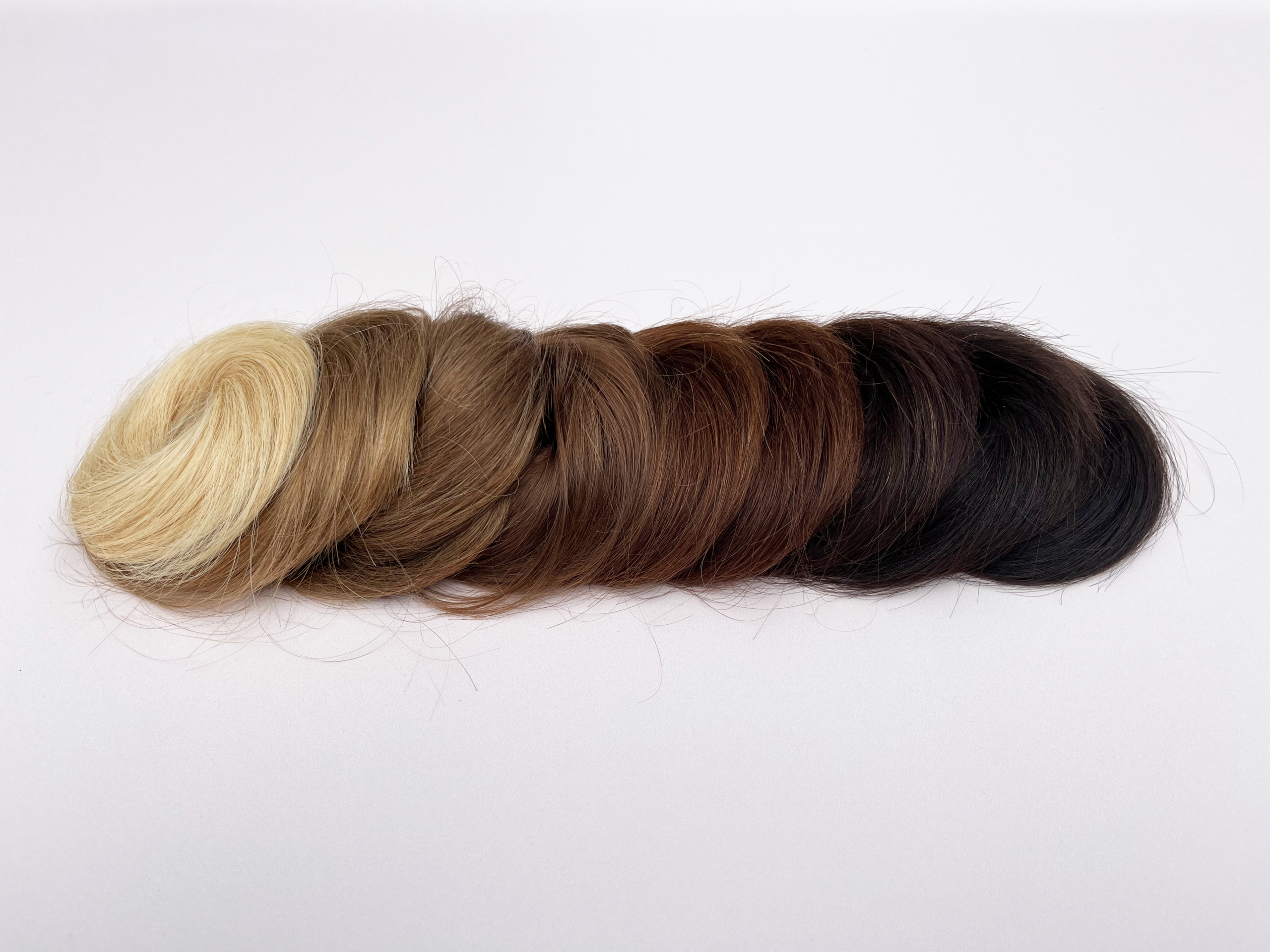Nous utilisons des cheveux naturels « Rémy » brésiliens. Le terme « Rémy » signifie que les cheveux et les cuticules de la mèche sont orientés dans le même sens sur le volumateur. À l’opposé des cheveux non « Rémy » qui sont assemblés en vrac. Ils ont donc plus tendance à s’emmêler et à s’abîmer facilement.