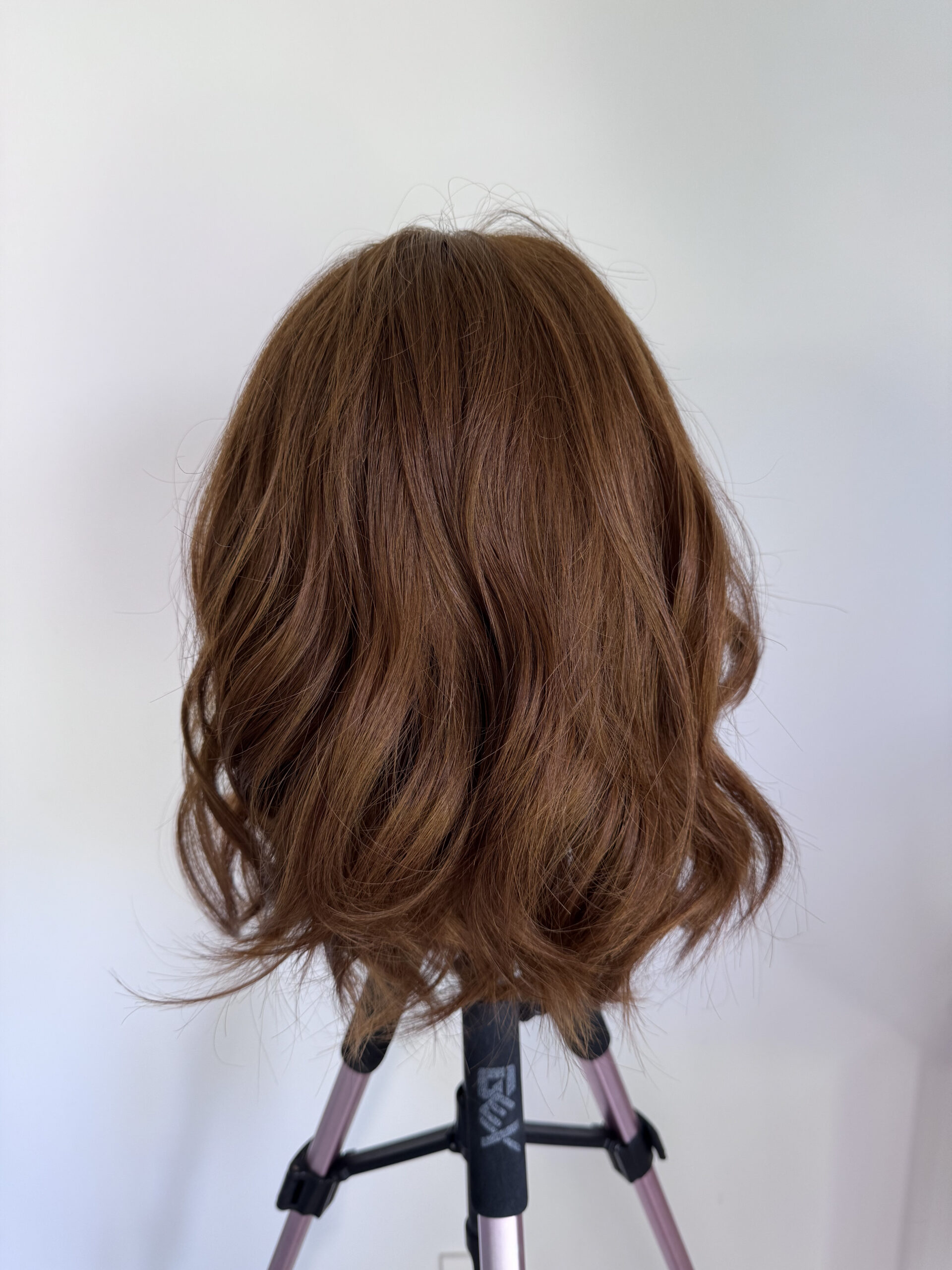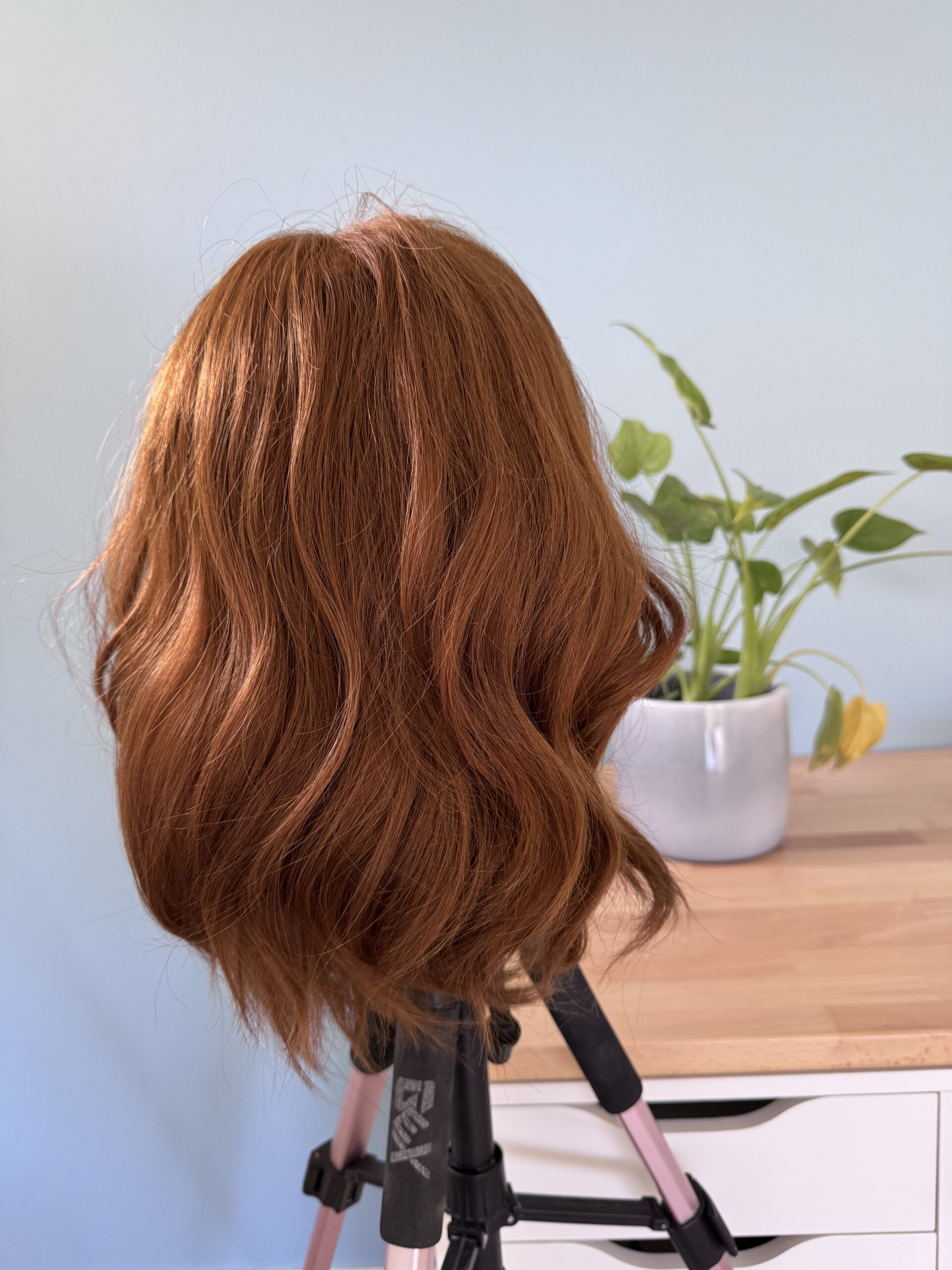Perruque auburn lumineuse.