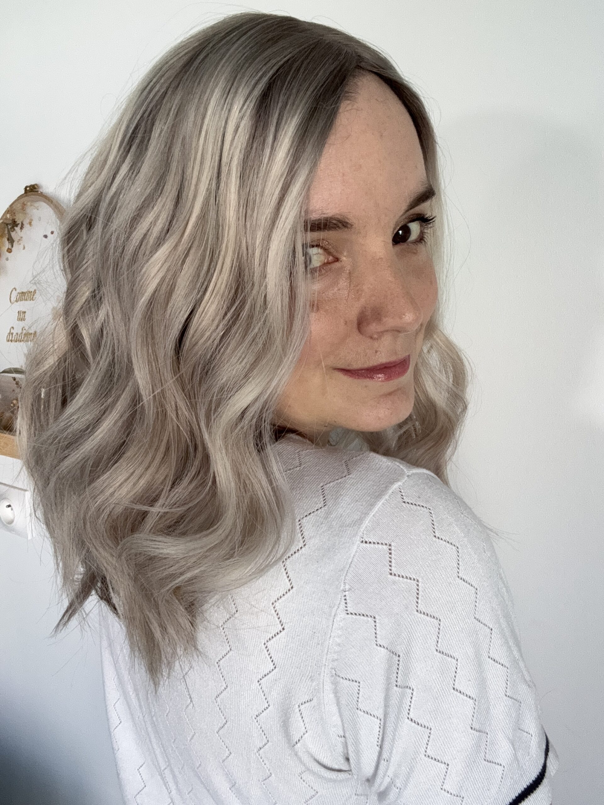 Arborez ce modèle en cheveux blancs aux reflets polaires argentés!