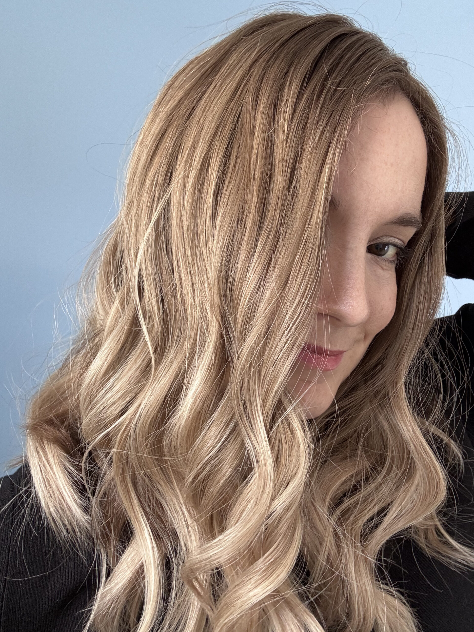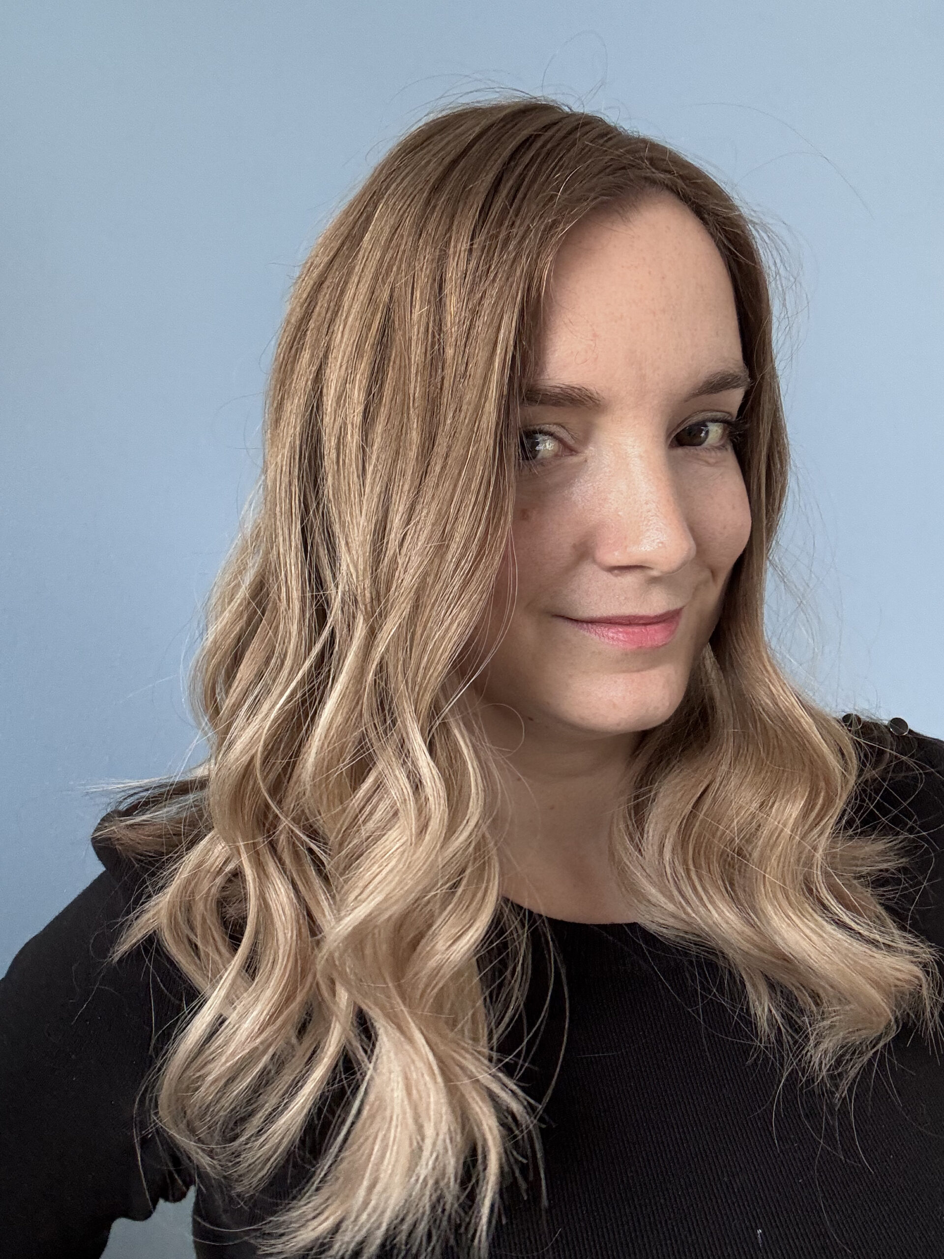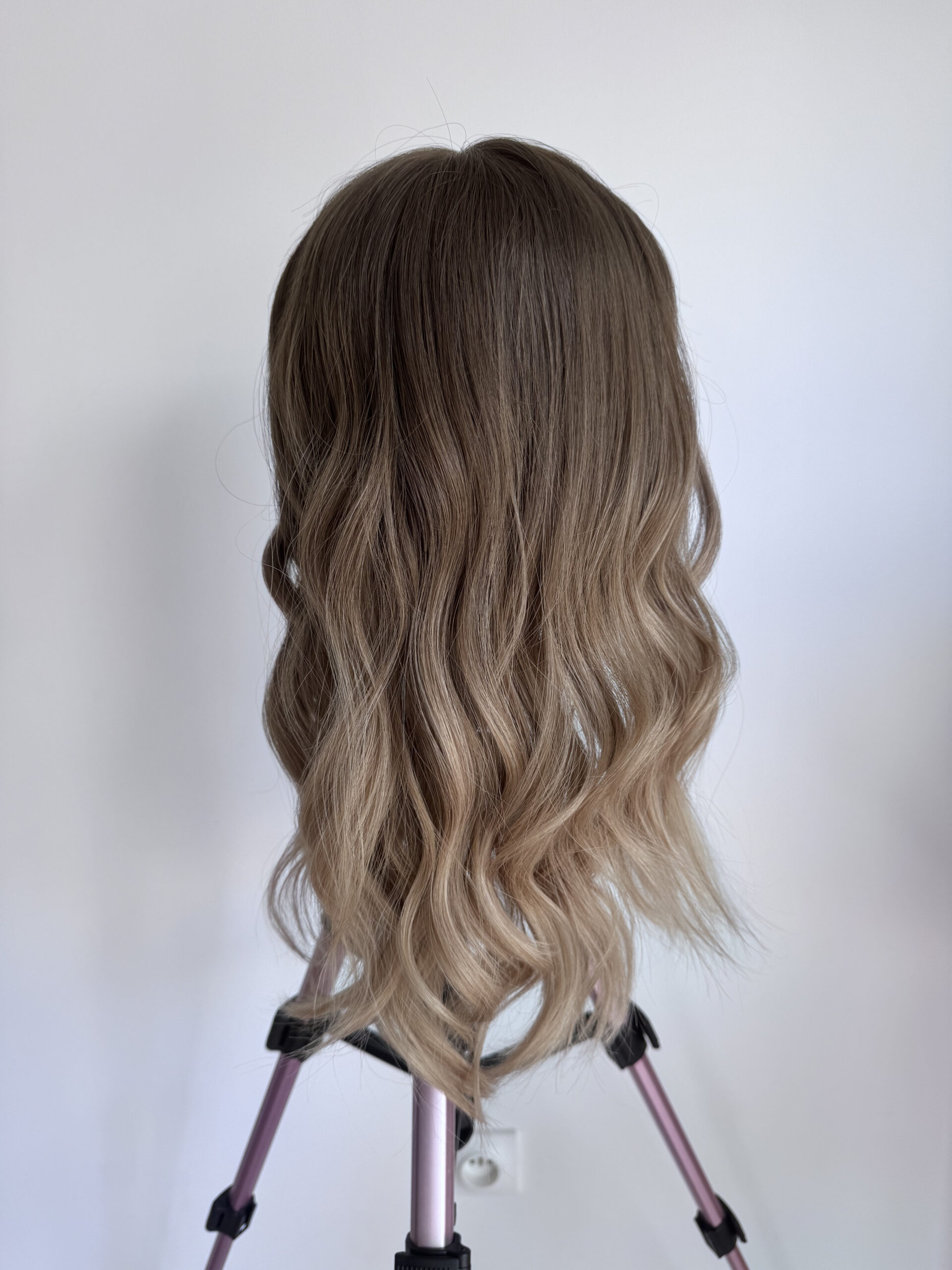 Un sublime ombré lumineux avec des racines châtain clair et des pointes blond clair cendré.